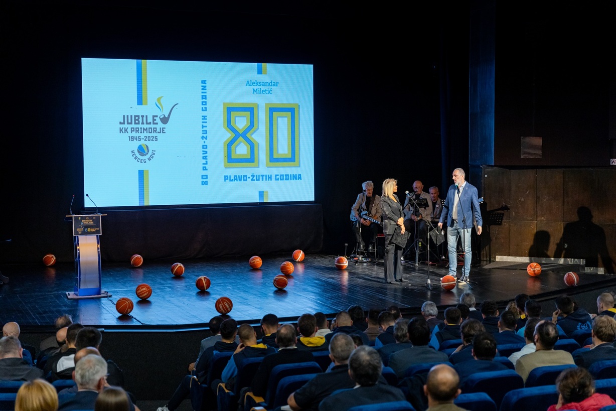 Звуком пиштаљке и бацањем лопте означен је почетак свечаности којом је синоћ у дворани Парк обиљежено осам деценија Кошаркашког клуба Приморје 1945, у години историјског успјеха и изласка на међународну сцену.