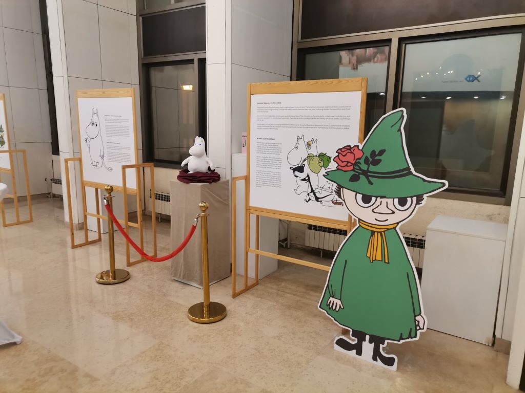 Изложба је само једна од активности амбасаде у част осам деценија Мумина који освајају срца читалаца у Финској и широм свијета дирљивим причама и вјечним темама, казао је амбасадор Линдквист. Списатељица и илустраторка Туве Јансон је првобитно писала књиге о Муминима на шведском језику, а оне су потом преведене на више од 60 језика. Како је казао, оне преносе дубоке поруке о породици, пријатељству, авантури, толеранцији и природи.