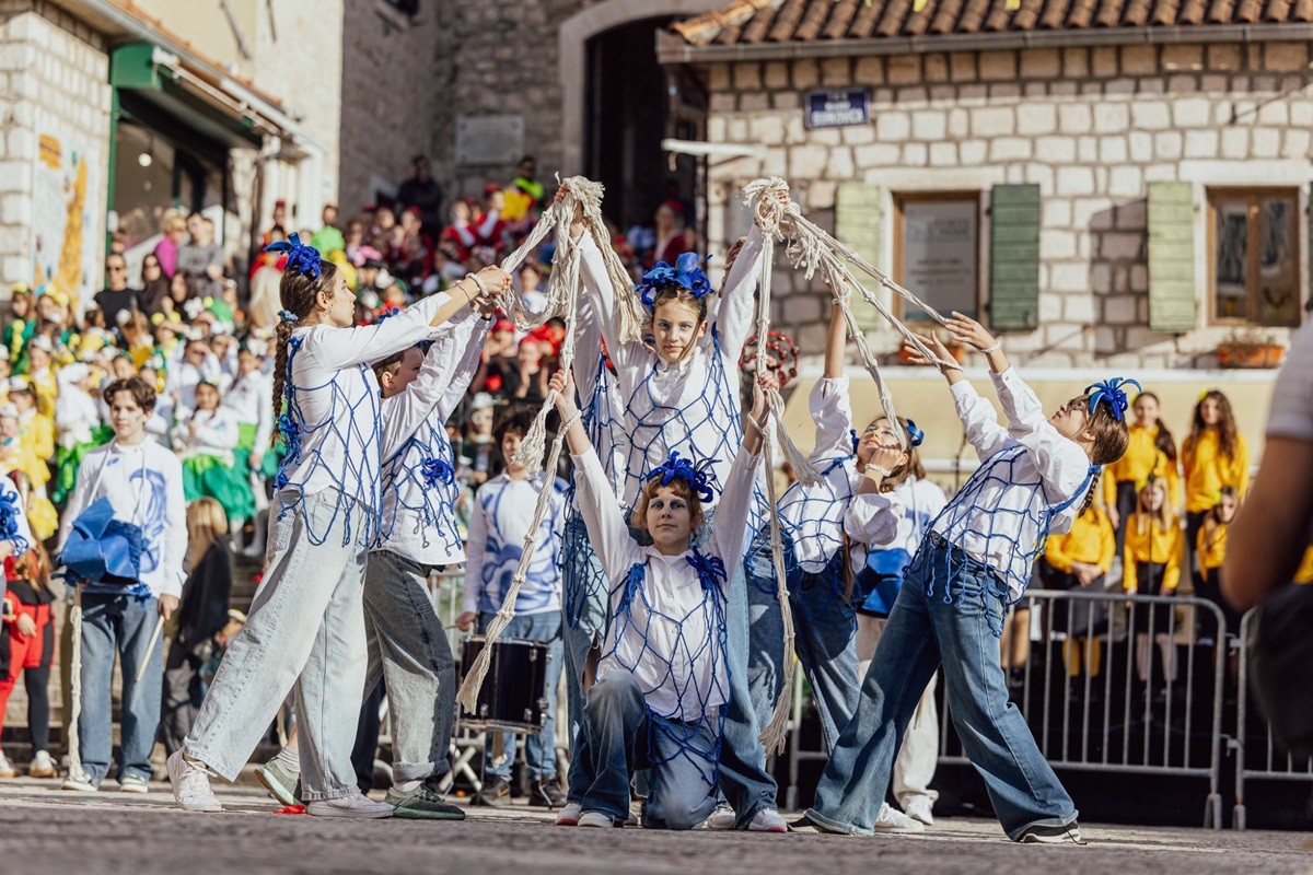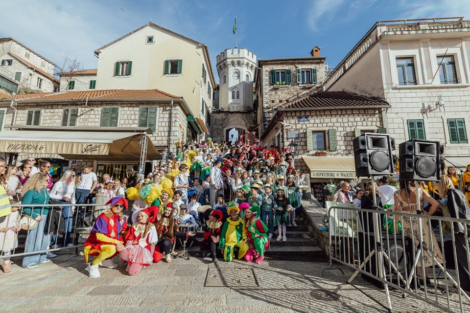 Вриједно припремане кореографије малишани су извели на Тргу Николе Ђурковића, пред бројним окупљенима који су сваку од 12 маскираних група наградили аплаузом. Програм су употпунили наступи дјечијег хора Цркутићи и хора Музичке школе Херцег Нови.