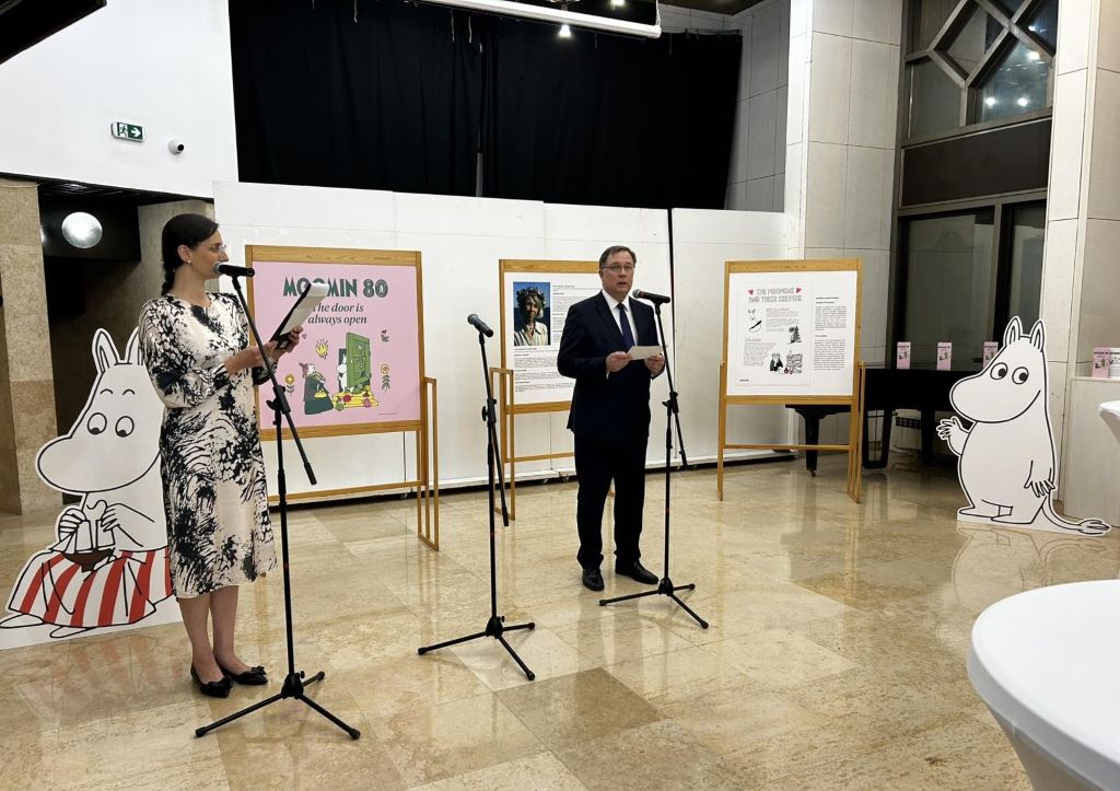 Изложба је само једна од активности амбасаде у част осам деценија Мумина који освајају срца читалаца у Финској и широм свијета дирљивим причама и вјечним темама, казао је амбасадор Линдквист. Списатељица и илустраторка Туве Јансон је првобитно писала књиге о Муминима на шведском језику, а оне су потом преведене на више од 60 језика. Како је казао, оне преносе дубоке поруке о породици, пријатељству, авантури, толеранцији и природи.