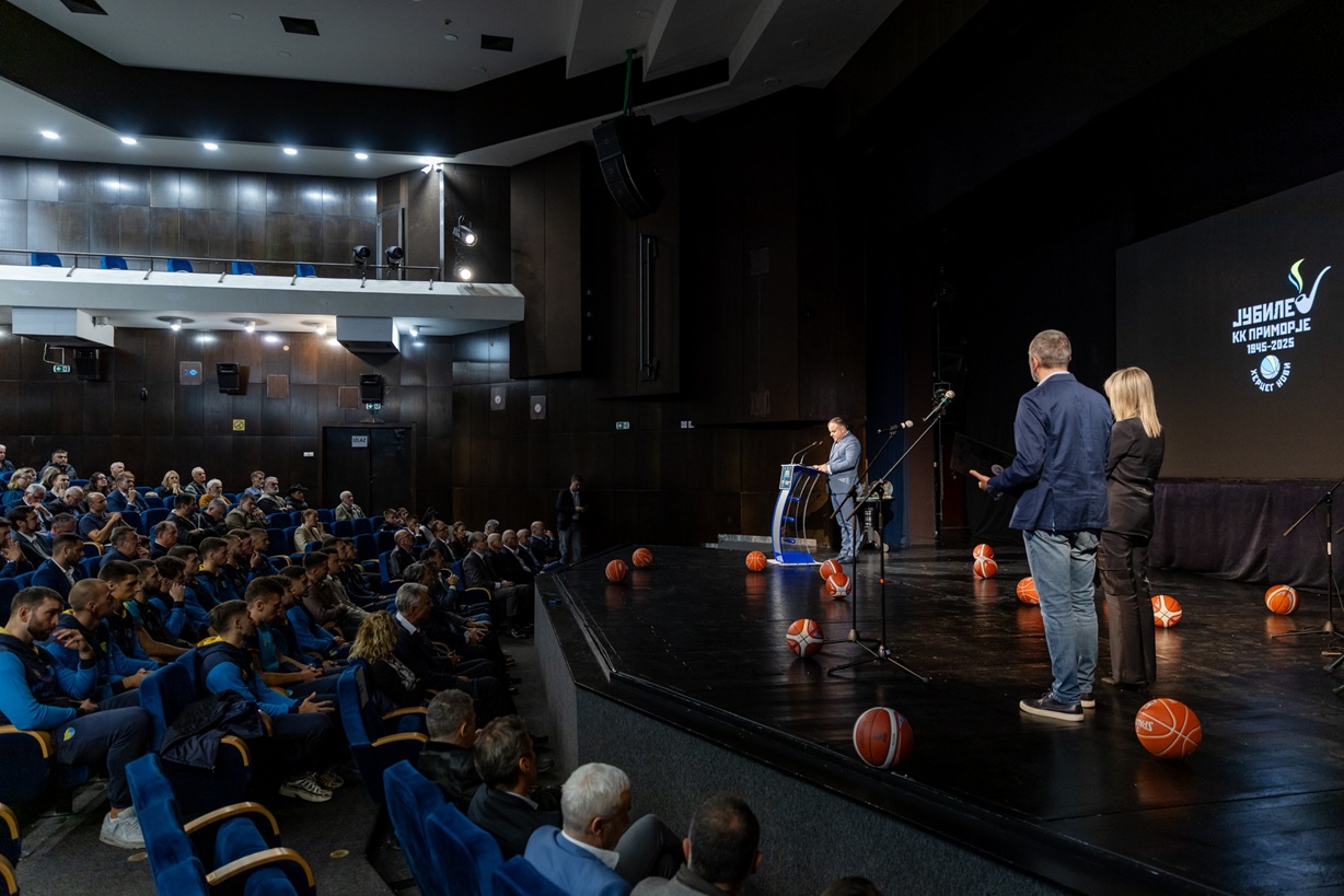 Звуком пиштаљке и бацањем лопте означен је почетак свечаности којом је синоћ у дворани Парк обиљежено осам деценија Кошаркашког клуба Приморје 1945, у години историјског успјеха и изласка на међународну сцену.