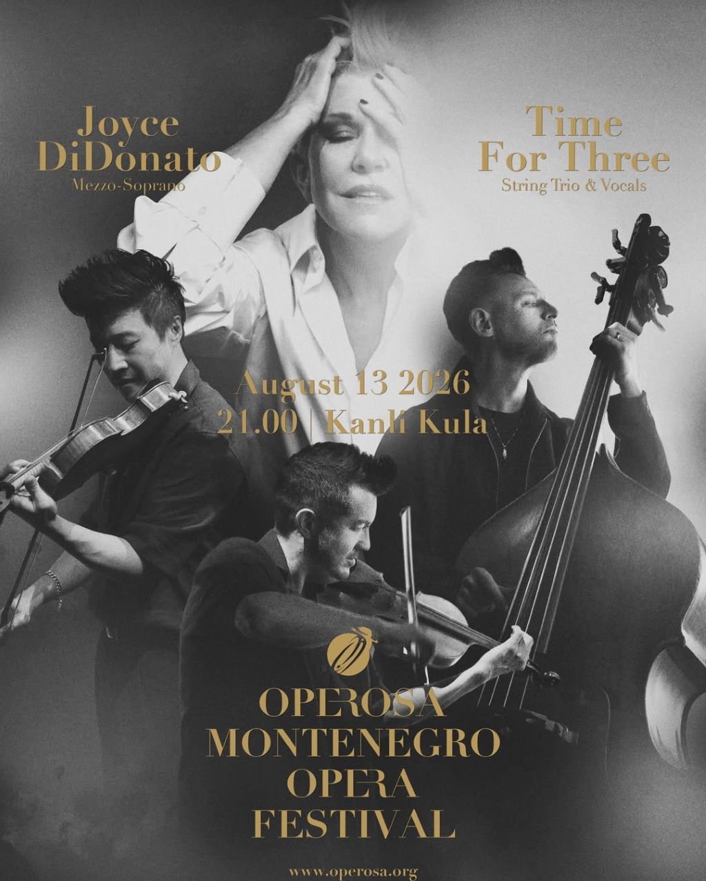 Svjetski poznata operska pjevačica, mecosopran Džojs DiDonato, jedan od najmoćnijih glasova svoje generacije i Time for Three, klasični, ali žanrovski raznovrsni trio donose spoj klasike i savremenog zvuka i stavljaju Herceg Novi i Crnu Goru na mapu svjetskih operskih događaja.