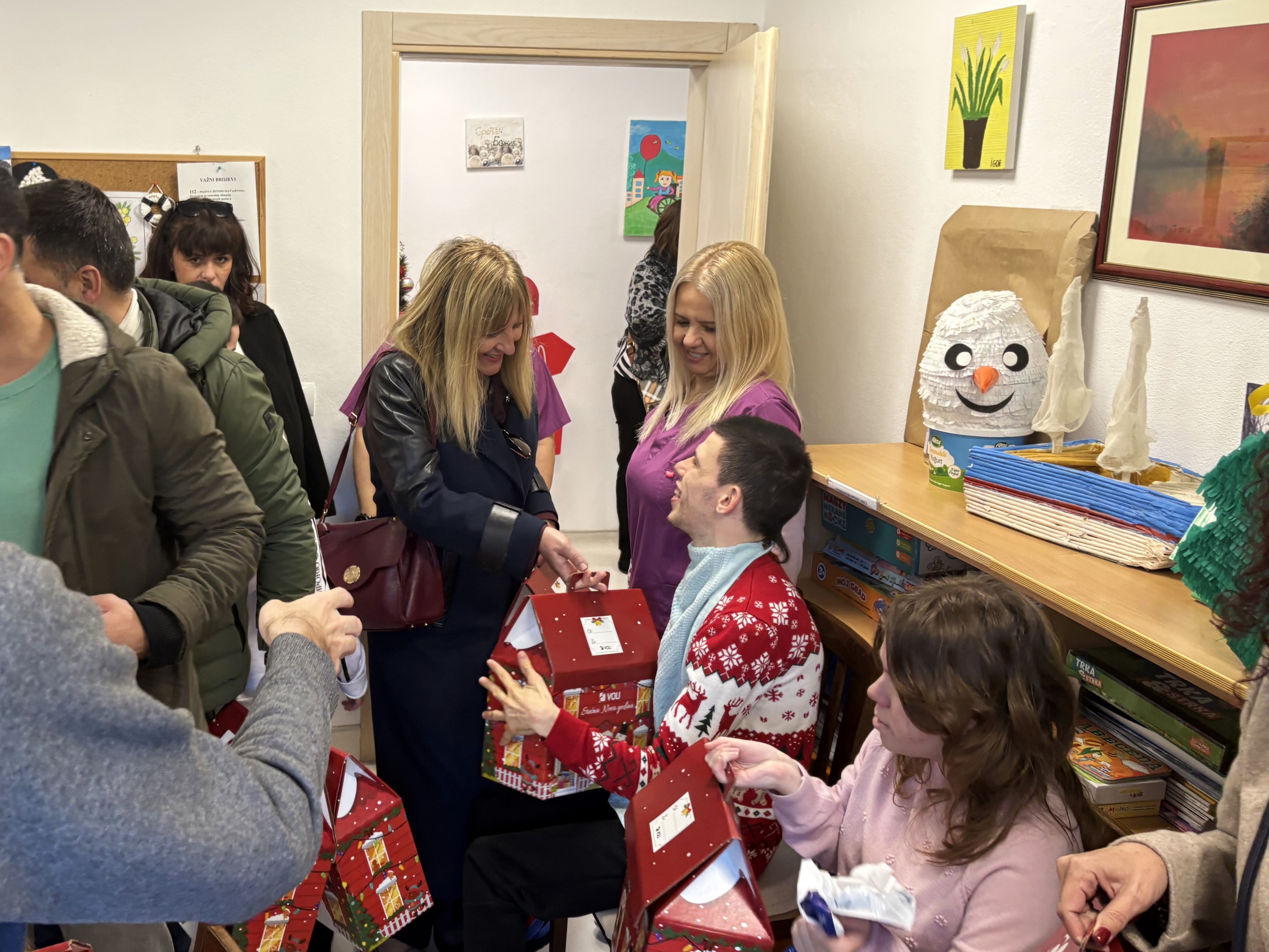 Дружење у Дневном центру ове године је било веселије и масовније, јер је уручивање поклона уприличено заједно за дјецу која су штићеници установе и за оне старије, који користе сервис у „Новој шанси“.